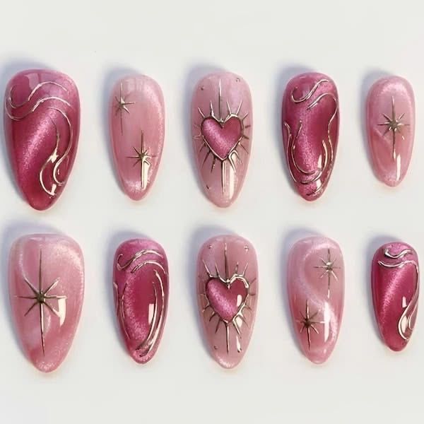 Elevate Your Style with Our Elegant Pink Cat Eye & Celestial Heart Press On Nails Looking for a sophisticated manicure that perfectly blends romantic charm with celestial art? Our luxury handcrafted press on nail set offers a stunning, multi-dimensional aesthetic. Featuring a mesmerizing pink cat eye base that shifts with the light, these handmade false nails are a true work of art. Get a flawless, custom salon look right from the comfort of your home.